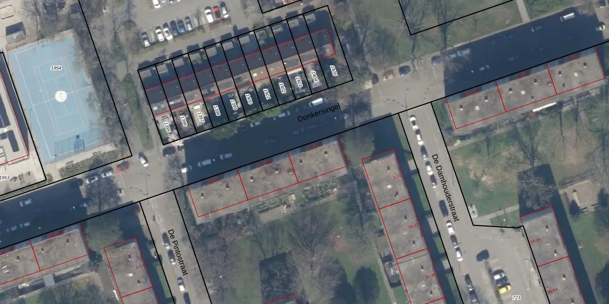 Het perceel waarop Donkersingel 138 staat heeft een oppervlakte van 8243 m². Dit is een zeer groot perceel. De perceeloppervlakte wordt geregistreerd door het Kadaster. Gedetailleerde informatie over de maten van dit perceel kunt u vinden in het rapport Kadastrale kaart met maatvoering van Donkersingel 138.