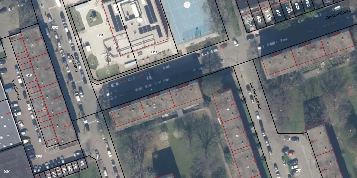 Het perceel waarop Donkersingel 194 staat heeft een oppervlakte van 8217 m². Dit is een zeer groot perceel. De perceeloppervlakte wordt geregistreerd door het Kadaster. Gedetailleerde informatie over de maten van dit perceel kunt u vinden in het rapport Kadastrale kaart met maatvoering van Donkersingel 194.