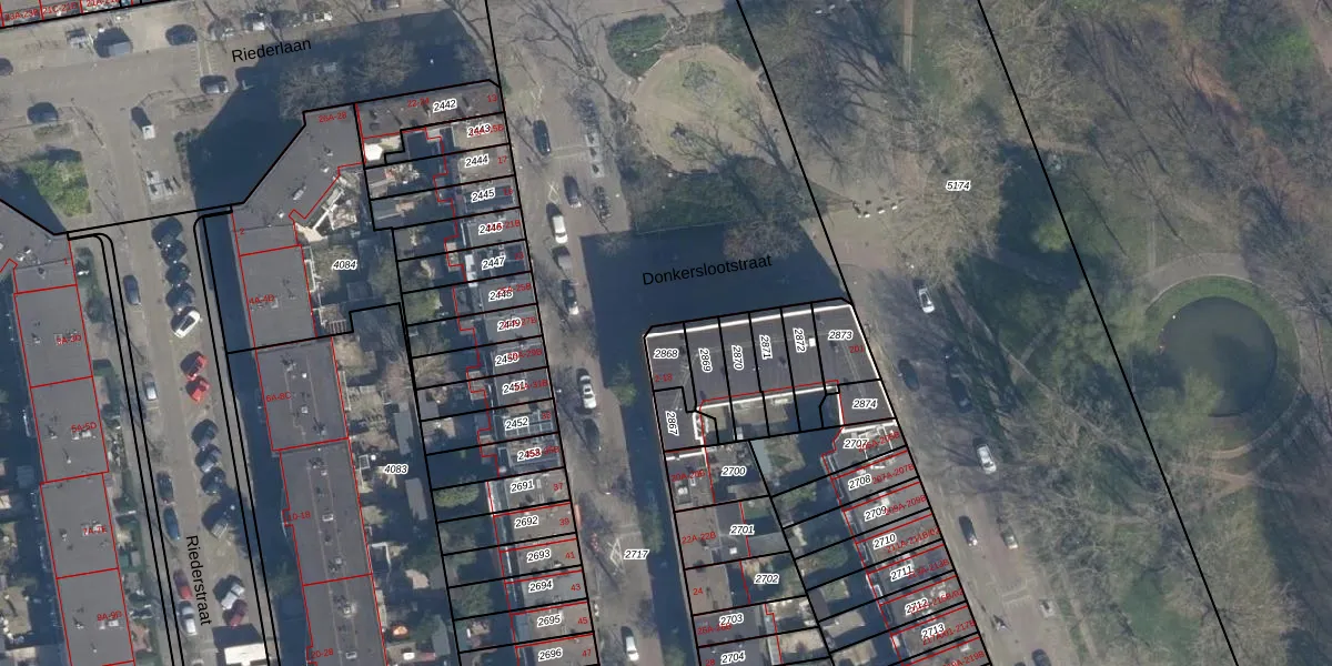 Donkerslootstraat 12-C is gelegen op kadastraal perceel RTD05V2868. Deze kadastrale aanduiding is uniek en wordt gebruikt door het Kadaster om eigendomsrechten en andere zakelijke rechten vast te leggen. Het perceel maakt onderdeel uit van de kadastrale gemeente Rotterdam.