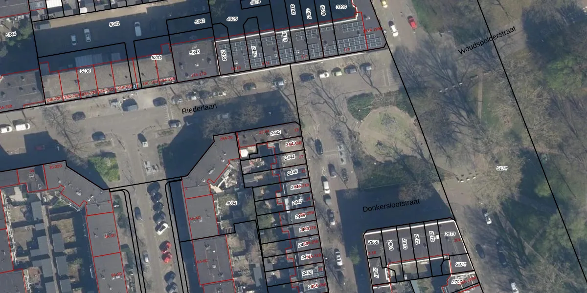 Donkerslootstraat 15-B is gelegen op kadastraal perceel RTD05V2443. Deze kadastrale aanduiding is uniek en wordt gebruikt door het Kadaster om eigendomsrechten en andere zakelijke rechten vast te leggen. Het perceel maakt onderdeel uit van de kadastrale gemeente Rotterdam.