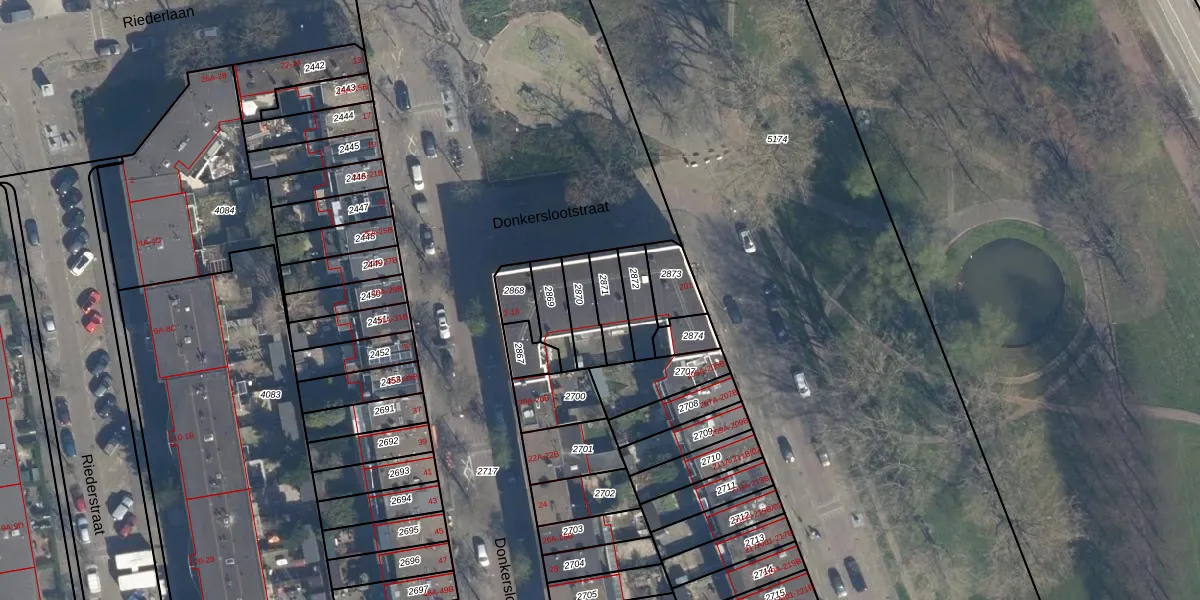 Donkerslootstraat 18 is gelegen op kadastraal perceel RTD05V2871. Deze kadastrale aanduiding is uniek en wordt gebruikt door het Kadaster om eigendomsrechten en andere zakelijke rechten vast te leggen. Het perceel maakt onderdeel uit van de kadastrale gemeente Rotterdam.