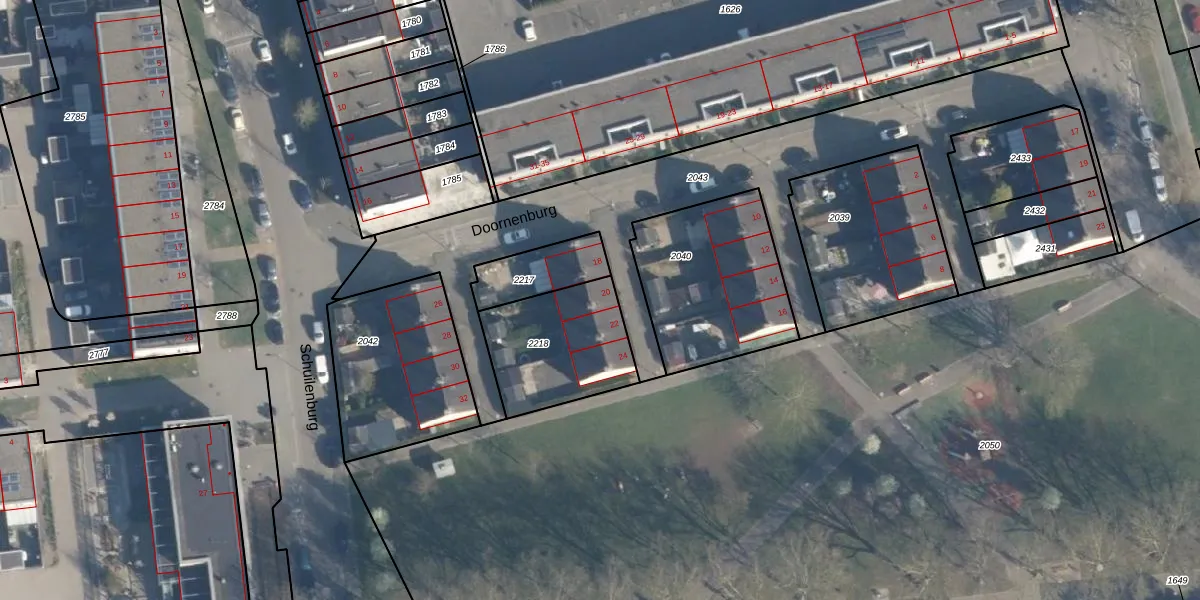 Doornenburg 20 is gelegen op kadastraal perceel CLS00K2218. Deze kadastrale aanduiding is uniek en wordt gebruikt door het Kadaster om eigendomsrechten en andere zakelijke rechten vast te leggen. Het perceel maakt onderdeel uit van de kadastrale gemeente Charlois.