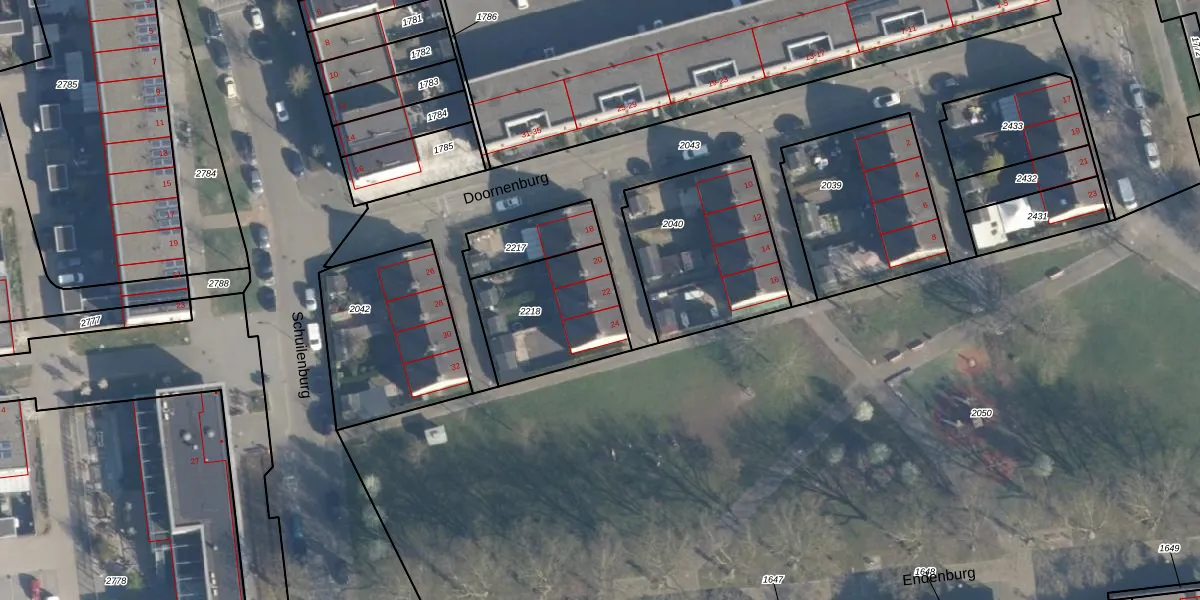 Het perceel waarop Doornenburg 22 staat heeft een oppervlakte van 425 m². Dit is een groot perceel. De perceeloppervlakte wordt geregistreerd door het Kadaster. Gedetailleerde informatie over de maten van dit perceel kunt u vinden in het rapport Kadastrale kaart met maatvoering van Doornenburg 22.