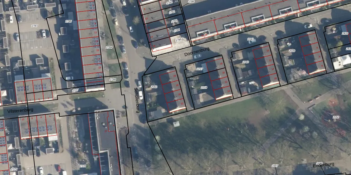 Doornenburg 28 is gelegen op kadastraal perceel CLS00K2042. Deze kadastrale aanduiding is uniek en wordt gebruikt door het Kadaster om eigendomsrechten en andere zakelijke rechten vast te leggen. Het perceel maakt onderdeel uit van de kadastrale gemeente Charlois.