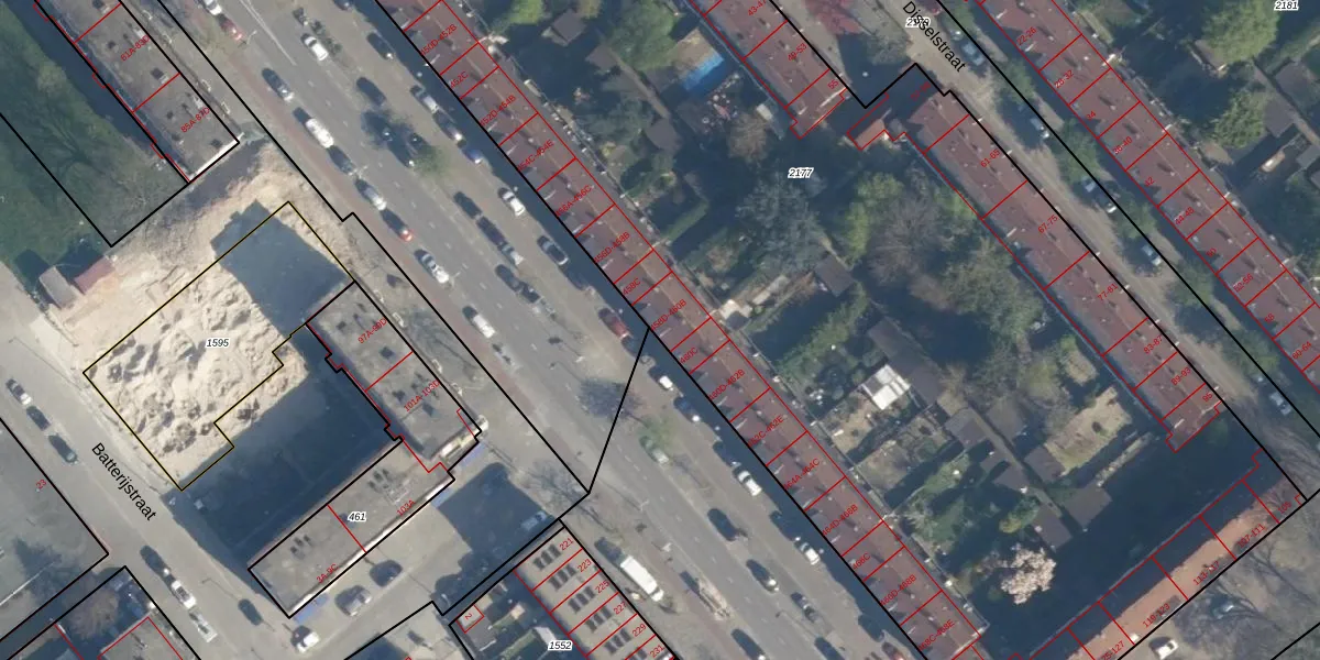 Het perceel waarop het adres ligt is CLS00-F-2177. De afkorting 'CLS00' staat voor kadastrale gemeente Charlois. De oppervlakte van het perceel is 8170 m². Dat is groter dan gemiddeld in Charlois, waar de gemiddelde perceeloppervlakte op 1147,69 m² ligt. De grootste perceeloppervlakte in de kadastrale gemeente is 1,09 km². De kleinste oppervlakte bedraagt 0 m². Er zijn 99 adressen aanwezig op het perceel. De laatste wijziging in het de Basisregistratie Kadaster (BRK) was op 24-04-2003.