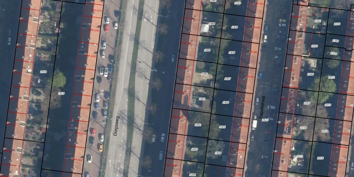 Dorpsweg 134-A is gelegen op kadastraal perceel CLS00H1891. Deze kadastrale aanduiding is uniek en wordt gebruikt door het Kadaster om eigendomsrechten en andere zakelijke rechten vast te leggen. Het perceel maakt onderdeel uit van de kadastrale gemeente Charlois.