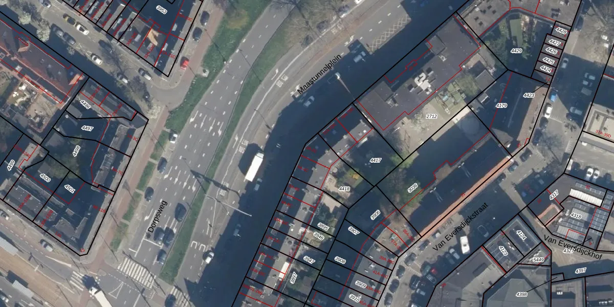 Het perceel waarop het adres ligt is CLS00-E-4418. De afkorting 'CLS00' staat voor kadastrale gemeente Charlois. Het perceel is 309 m² groot. Dat is kleiner dan de gemiddelde perceeloppervlakte in Charlois, dat op 1147,24 m² ligt. Het grootste perceel in de kadastrale gemeente is 1,09 km². Het kleinste perceel heeft een oppervlakte van 0 m². Er zijn 6 adressen aanwezig op het perceel. De huidige grenzen van het perceel zijn digitaal in de Basisregistratie Kadaster (BRK) geregistreerd op 16-09-2009.