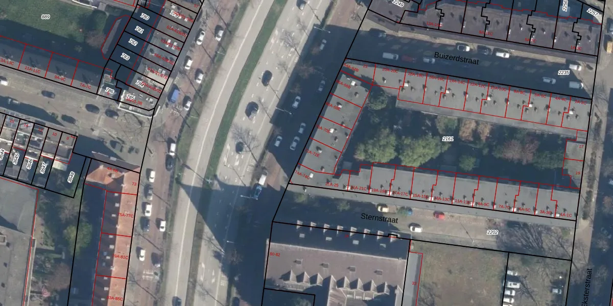 Het perceel waarop het adres ligt is CLS00-H-2161. De afkorting 'CLS00' staat voor kadastrale gemeente Charlois. De oppervlakte van het perceel is 3667 m². Dat is groter dan gemiddeld in Charlois, waar de gemiddelde perceeloppervlakte op 1147,95 m² ligt. De grootste perceeloppervlakte in de kadastrale gemeente is 1,09 km². De kleinste oppervlakte bedraagt 0 m². Er zijn 94 adressen aanwezig op het perceel. In de Basisregistratie Kadaster (BRK) werden de grenzen van het perceel geregistreerd op 30-11-2006.