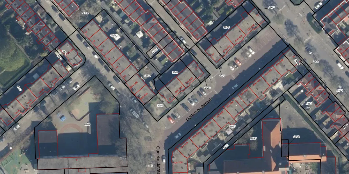 Het perceel waarop Dortsmondstraat 55-A staat heeft een oppervlakte van 309 m². Dit is een groot perceel. De perceeloppervlakte wordt geregistreerd door het Kadaster. Gedetailleerde informatie over de maten van dit perceel kunt u vinden in het rapport Kadastrale kaart met maatvoering van Dortsmondstraat 55-A.