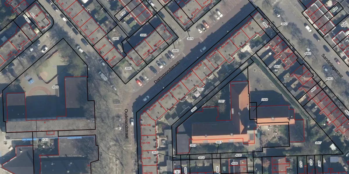 Het perceel waarop Dortsmondstraat 58-A staat heeft een oppervlakte van 2257 m². Dit is een zeer groot perceel. De perceeloppervlakte wordt geregistreerd door het Kadaster. Gedetailleerde informatie over de maten van dit perceel kunt u vinden in het rapport Kadastrale kaart met maatvoering van Dortsmondstraat 58-A.
