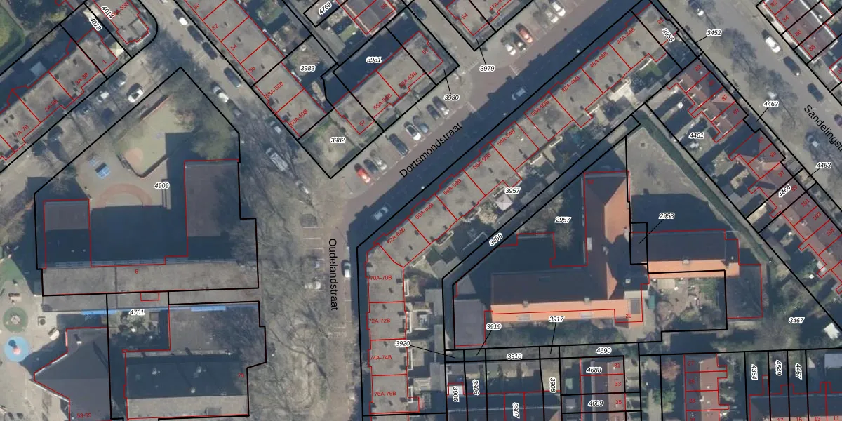 Het perceel waarop Dortsmondstraat 60-A staat heeft een oppervlakte van 2257 m². Dit is een zeer groot perceel. De perceeloppervlakte wordt geregistreerd door het Kadaster. Gedetailleerde informatie over de maten van dit perceel kunt u vinden in het rapport Kadastrale kaart met maatvoering van Dortsmondstraat 60-A.