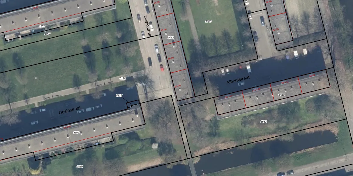 Dosiostraat 62 is gelegen op kadastraal perceel KLG00K1062. Deze kadastrale aanduiding is uniek en wordt gebruikt door het Kadaster om eigendomsrechten en andere zakelijke rechten vast te leggen. Het perceel maakt onderdeel uit van de kadastrale gemeente Kralingen.