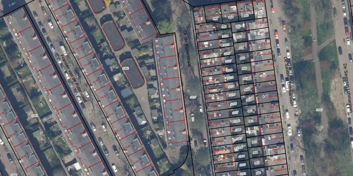 Dr. de Visserstraat 27-A is gelegen op kadastraal perceel RTD10AB1442. Deze kadastrale aanduiding is uniek en wordt gebruikt door het Kadaster om eigendomsrechten en andere zakelijke rechten vast te leggen. Het perceel maakt onderdeel uit van de kadastrale gemeente Rotterdam.