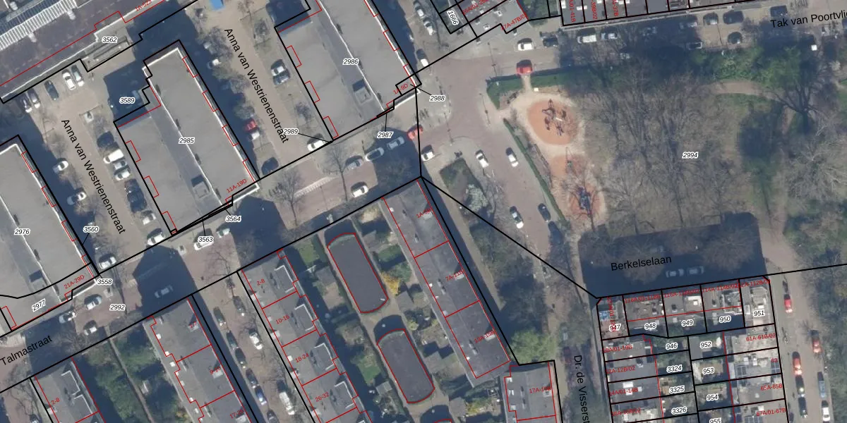 Dr. de Visserstraat 5-B is gelegen op kadastraal perceel RTD10AB1442. Deze kadastrale aanduiding is uniek en wordt gebruikt door het Kadaster om eigendomsrechten en andere zakelijke rechten vast te leggen. Het perceel maakt onderdeel uit van de kadastrale gemeente Rotterdam.