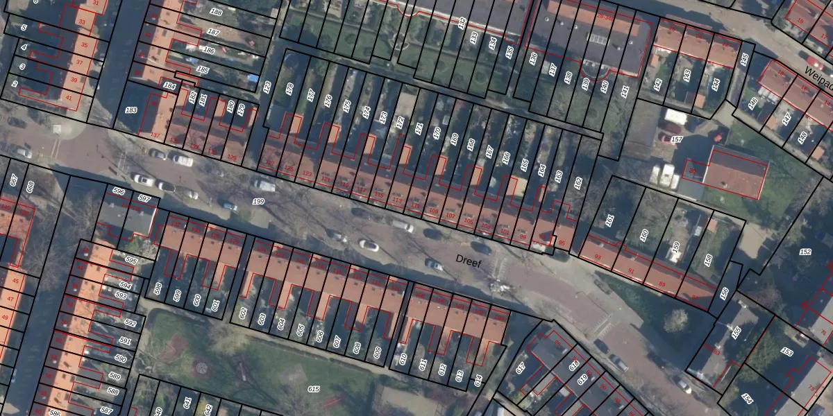 Het perceel waarop Dreef 111 staat heeft een oppervlakte van 135 m². Dit is een middelgroot perceel. De perceeloppervlakte wordt geregistreerd door het Kadaster. Gedetailleerde informatie over de maten van dit perceel kunt u vinden in het rapport Kadastrale kaart met maatvoering van Dreef 111.