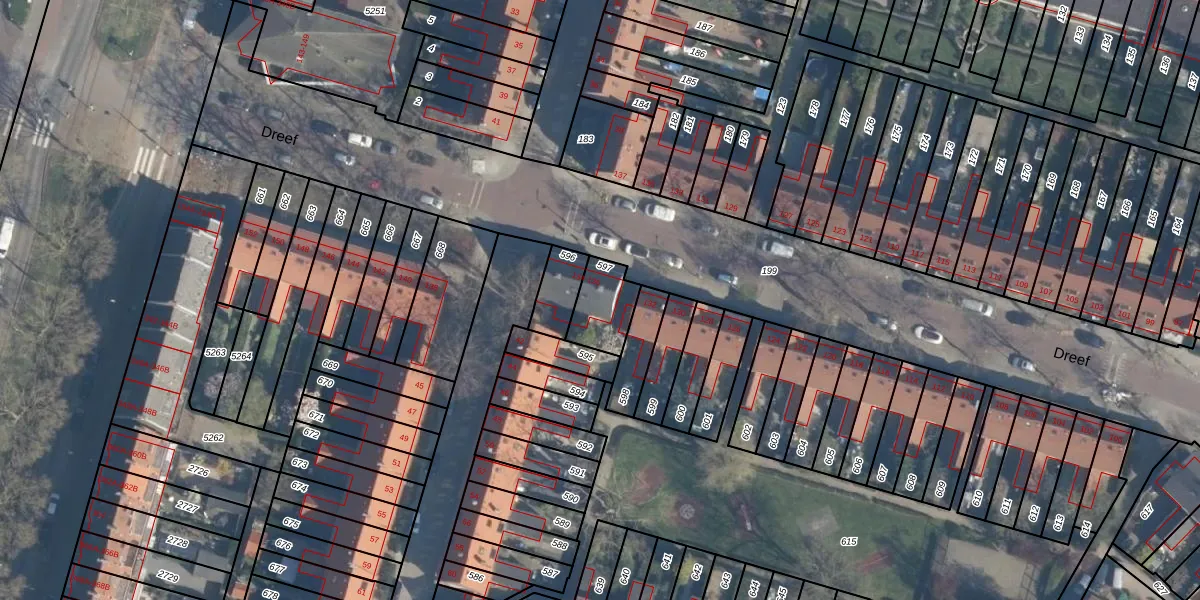Gebruik de zoekbalk of klik op een perceel voor informatie over de adressen binnen dit perceel.