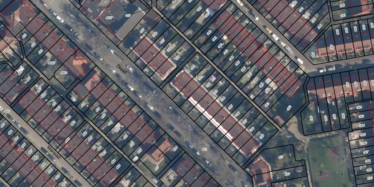 Het perceel waarop Dreef 57 staat heeft een oppervlakte van 153 m². Dit is een middelgroot perceel. De perceeloppervlakte wordt geregistreerd door het Kadaster. Gedetailleerde informatie over de maten van dit perceel kunt u vinden in het rapport Kadastrale kaart met maatvoering van Dreef 57.