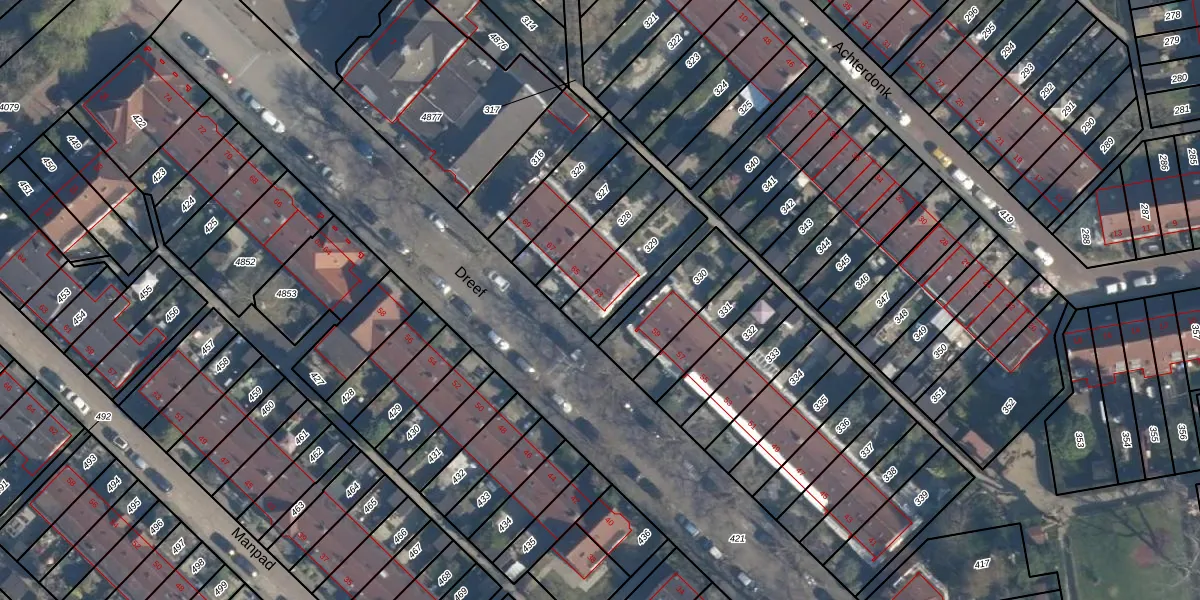 Gebruik de zoekbalk of klik op een perceel voor informatie over de adressen binnen dit perceel.
