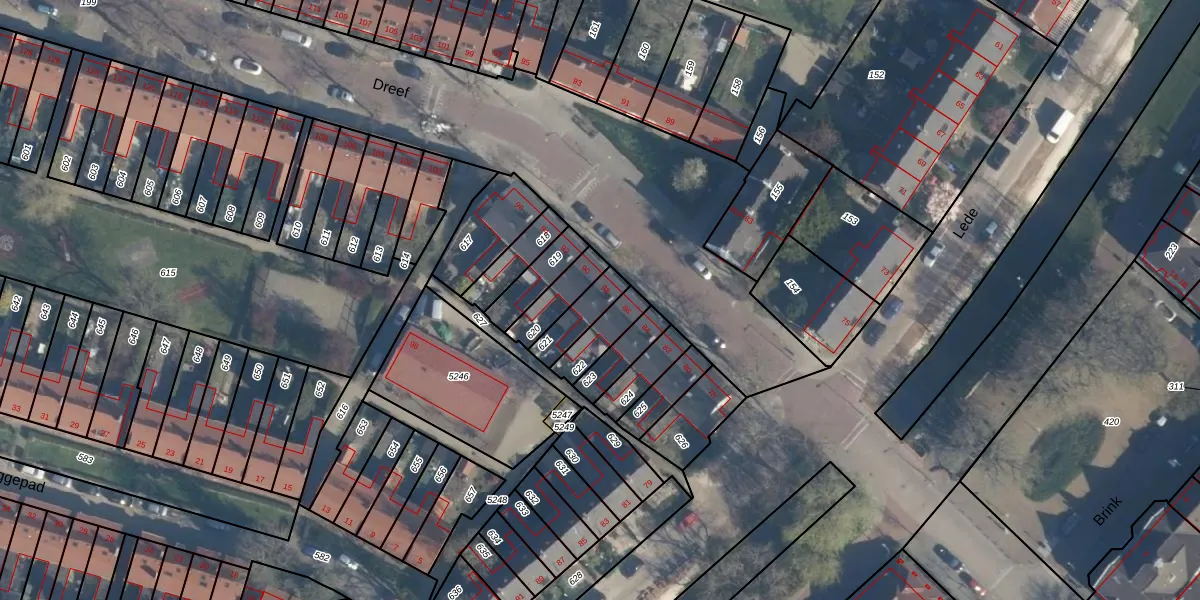 Gebruik de zoekbalk of klik op een perceel voor informatie over de adressen binnen dit perceel.