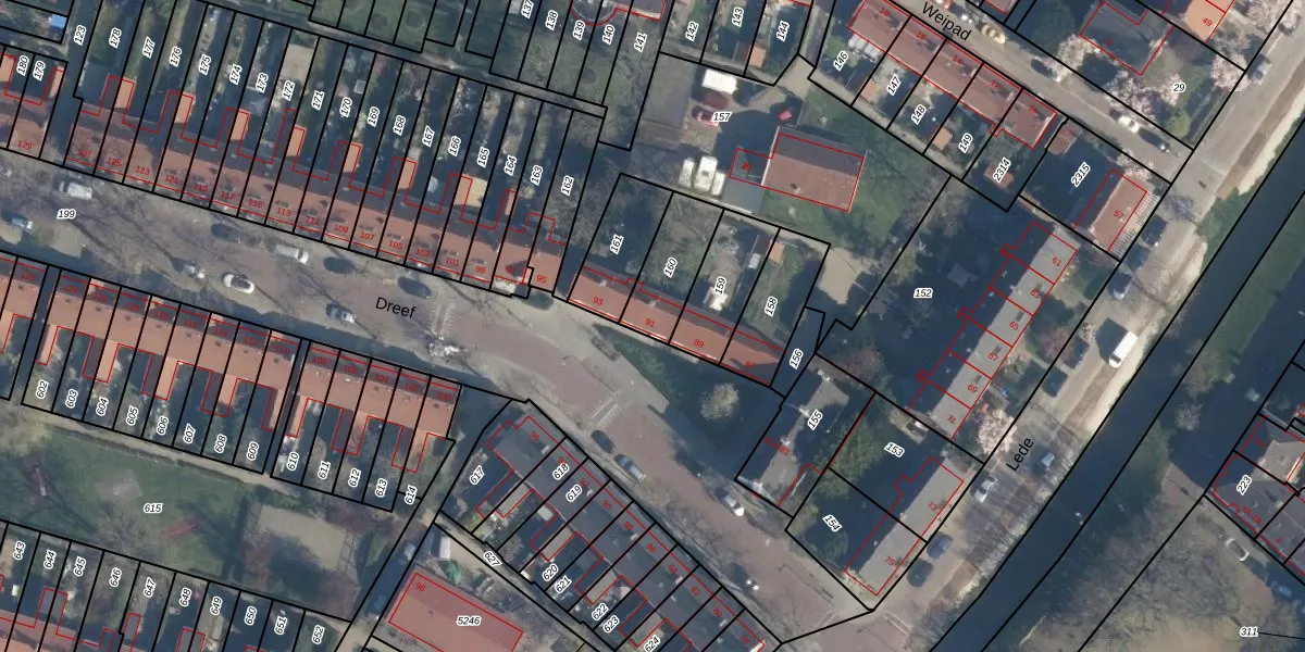 Het perceel waarop Dreef 91 staat heeft een oppervlakte van 186 m². Dit is een middelgroot perceel. De perceeloppervlakte wordt geregistreerd door het Kadaster. Gedetailleerde informatie over de maten van dit perceel kunt u vinden in het rapport Kadastrale kaart met maatvoering van Dreef 91.