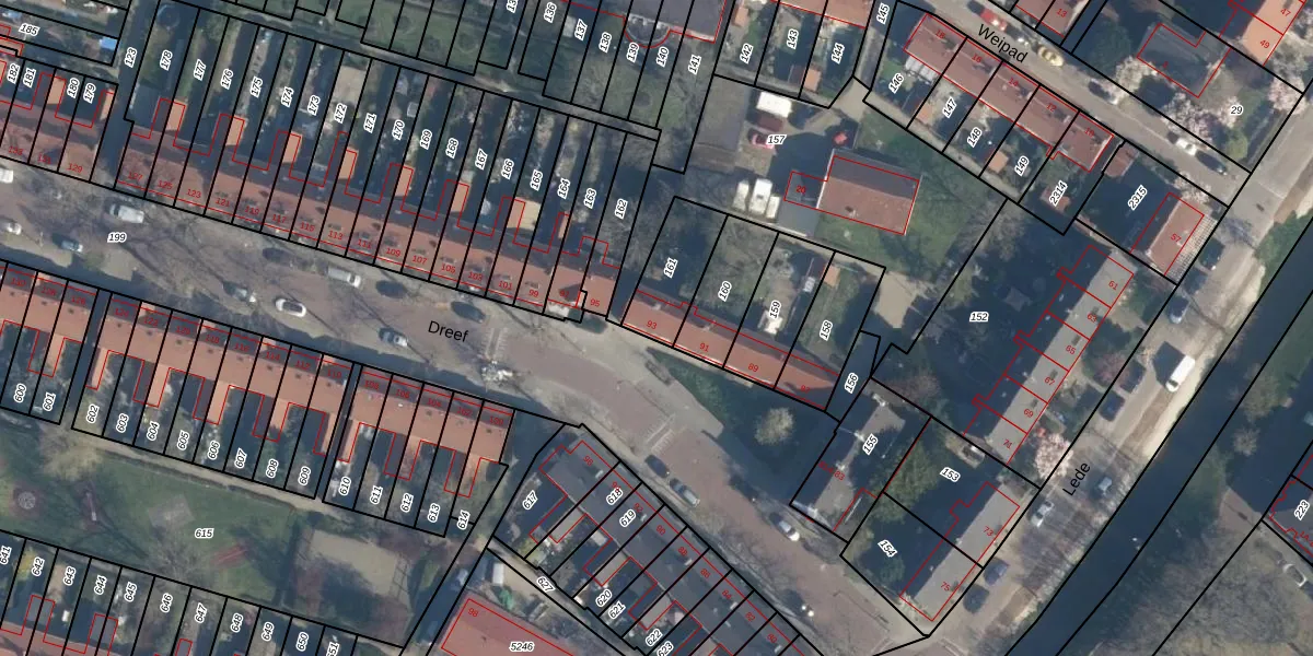 Gebruik de zoekbalk of klik op een perceel voor informatie over de adressen binnen dit perceel.