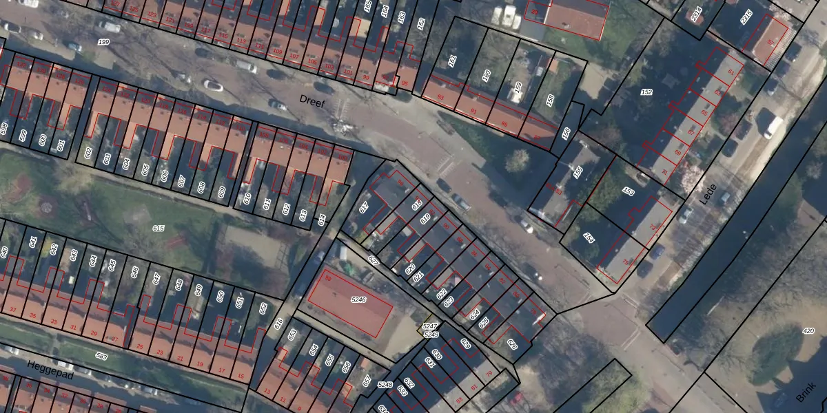 Het perceel waarop Dreef 94 staat heeft een oppervlakte van 98 m². Dit is een klein perceel. De perceeloppervlakte wordt geregistreerd door het Kadaster. Gedetailleerde informatie over de maten van dit perceel kunt u vinden in het rapport Kadastrale kaart met maatvoering van Dreef 94.