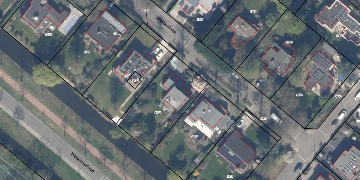 Het perceel waarop Dresdenlaan 41 staat heeft een oppervlakte van 1251 m². Dit is een zeer groot perceel. De perceeloppervlakte wordt geregistreerd door het Kadaster. Gedetailleerde informatie over de maten van dit perceel kunt u vinden in het rapport Kadastrale kaart met maatvoering van Dresdenlaan 41.