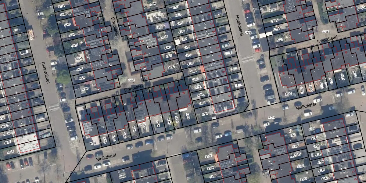 Het perceel waarop Driedistel 22 staat heeft een oppervlakte van 180 m². Dit is een middelgroot perceel. De perceeloppervlakte wordt geregistreerd door het Kadaster. Gedetailleerde informatie over de maten van dit perceel kunt u vinden in het rapport Kadastrale kaart met maatvoering van Driedistel 22.