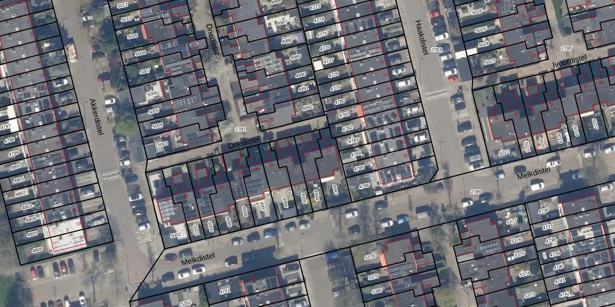Het perceel waarop Driedistel 24 staat heeft een oppervlakte van 147 m². Dit is een middelgroot perceel. De perceeloppervlakte wordt geregistreerd door het Kadaster. Gedetailleerde informatie over de maten van dit perceel kunt u vinden in het rapport Kadastrale kaart met maatvoering van Driedistel 24.