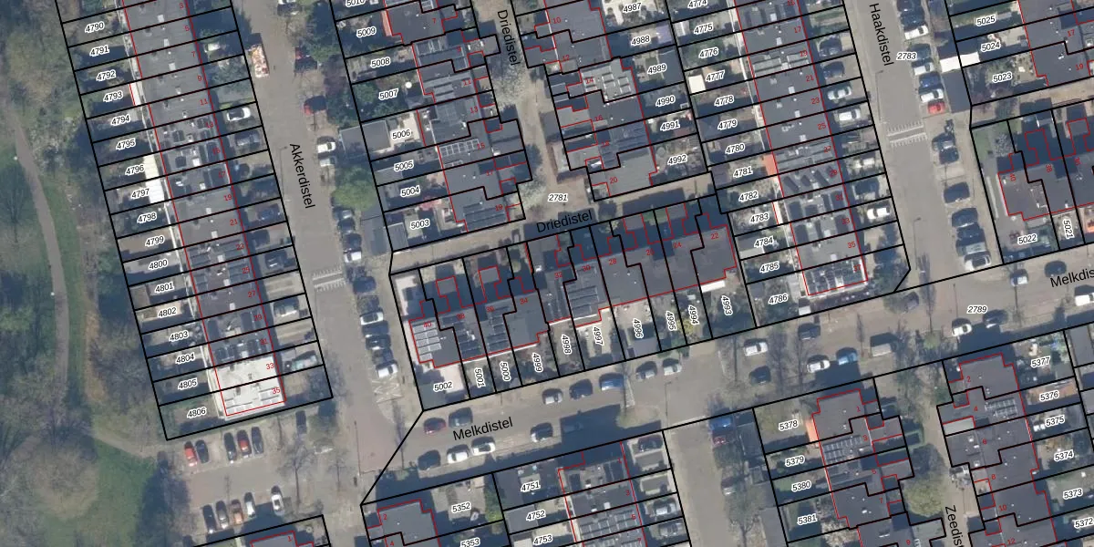 Het perceel waarop Driedistel 32 staat heeft een oppervlakte van 147 m². Dit is een middelgroot perceel. De perceeloppervlakte wordt geregistreerd door het Kadaster. Gedetailleerde informatie over de maten van dit perceel kunt u vinden in het rapport Kadastrale kaart met maatvoering van Driedistel 32.