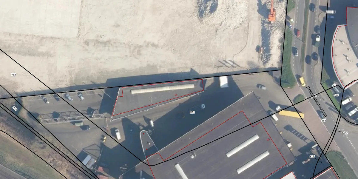 Het perceel waarop Driemanssteeweg 23 staat heeft een oppervlakte van 3845 m². Dit is een zeer groot perceel. De perceeloppervlakte wordt geregistreerd door het Kadaster. Gedetailleerde informatie over de maten van dit perceel kunt u vinden in het rapport Kadastrale kaart met maatvoering van Driemanssteeweg 23.