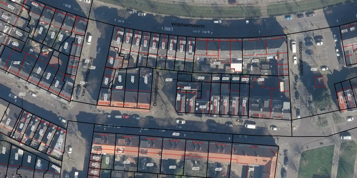 Driemorgenstraat 6-A is gelegen op kadastraal perceel CLS00E2106. Deze kadastrale aanduiding is uniek en wordt gebruikt door het Kadaster om eigendomsrechten en andere zakelijke rechten vast te leggen. Het perceel maakt onderdeel uit van de kadastrale gemeente Charlois.