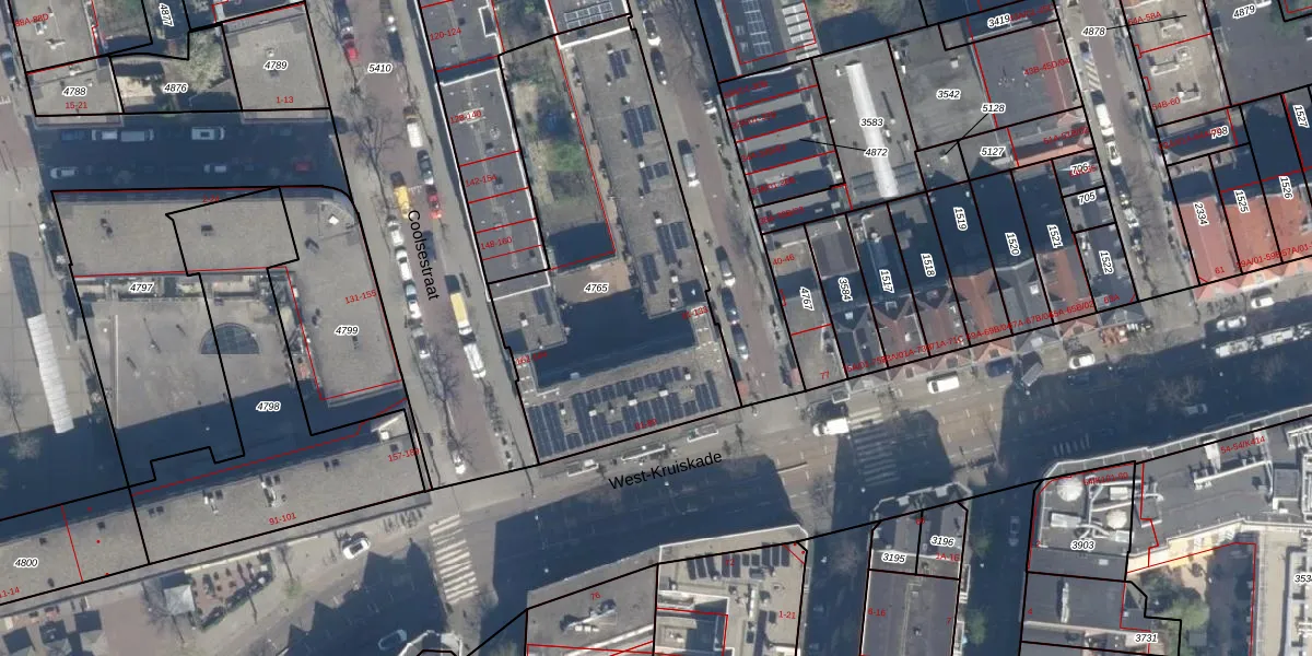 Het perceel waarop het adres ligt is RTD06-S-4765. De afkorting 'RTD06' staat voor kadastrale gemeente Rotterdam. Het perceel is met 1620 m² relatief groot. Het gemiddelde ligt in de kadastrale gemeente Rotterdam op 692,84 m². De grootste perceeloppervlakte in de kadastrale gemeente is 4,7 ha. De kleinste oppervlakte bedraagt 0 m². Op het perceel zijn 39 adressen aanwezig. In de Basisregistratie Kadaster (BRK) werden de grenzen van het perceel geregistreerd op 12-03-2003.