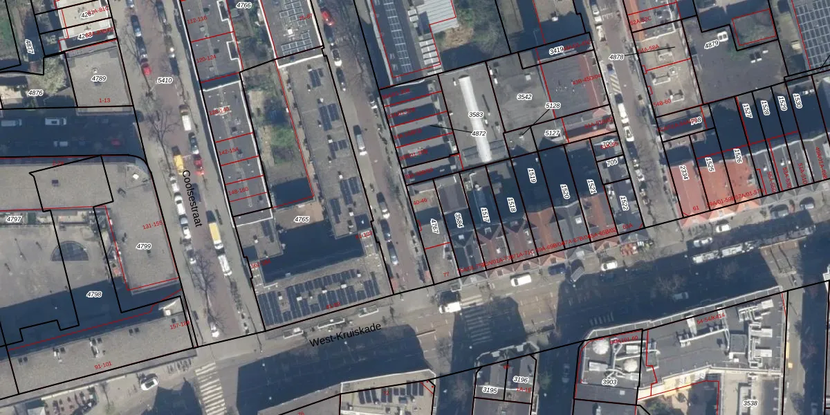 Het perceel waarop het adres ligt is RTD06-S-4767. De afkorting 'RTD06' staat voor kadastrale gemeente Rotterdam. De gemiddelde perceelgrootte in Rotterdam is 692,84 m². Dit perceel is kleiner: de perceeloppervlakte bedraagt 165 m². De grootste perceeloppervlakte in de kadastrale gemeente is 4,7 ha. De kleinste oppervlakte bedraagt 0 m². Er zijn 5 adressen aanwezig op het perceel. De huidige grenzen van het perceel zijn digitaal in de Basisregistratie Kadaster (BRK) geregistreerd op 12-03-2003.