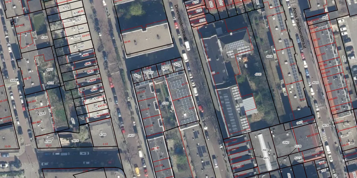 Het perceel waarop Drievriendenstraat 65 staat heeft een oppervlakte van 1240 m². Dit is een zeer groot perceel. De perceeloppervlakte wordt geregistreerd door het Kadaster. Gedetailleerde informatie over de maten van dit perceel kunt u vinden in het rapport Kadastrale kaart met maatvoering van Drievriendenstraat 65.