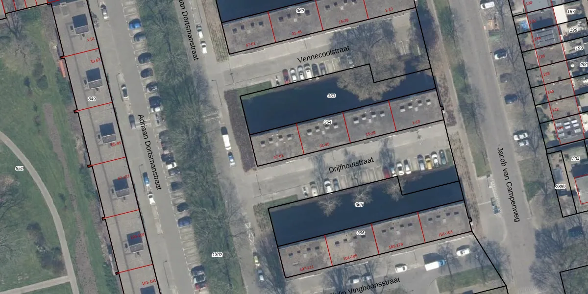 Het perceel waarop Drijfhoutstraat 47 staat heeft een oppervlakte van 728 m². Dit is een groot perceel. De perceeloppervlakte wordt geregistreerd door het Kadaster. Gedetailleerde informatie over de maten van dit perceel kunt u vinden in het rapport Kadastrale kaart met maatvoering van Drijfhoutstraat 47.