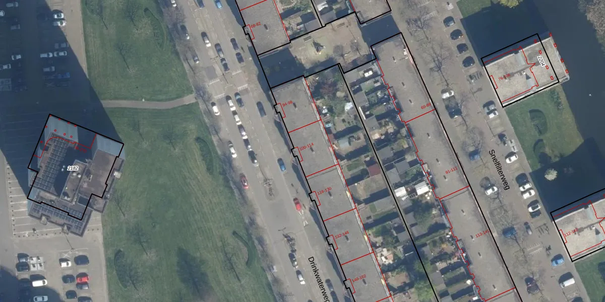 Drinkwaterweg 102 is gelegen op kadastraal perceel KLG00E2173. Deze kadastrale aanduiding is uniek en wordt gebruikt door het Kadaster om eigendomsrechten en andere zakelijke rechten vast te leggen. Het perceel maakt onderdeel uit van de kadastrale gemeente Kralingen.