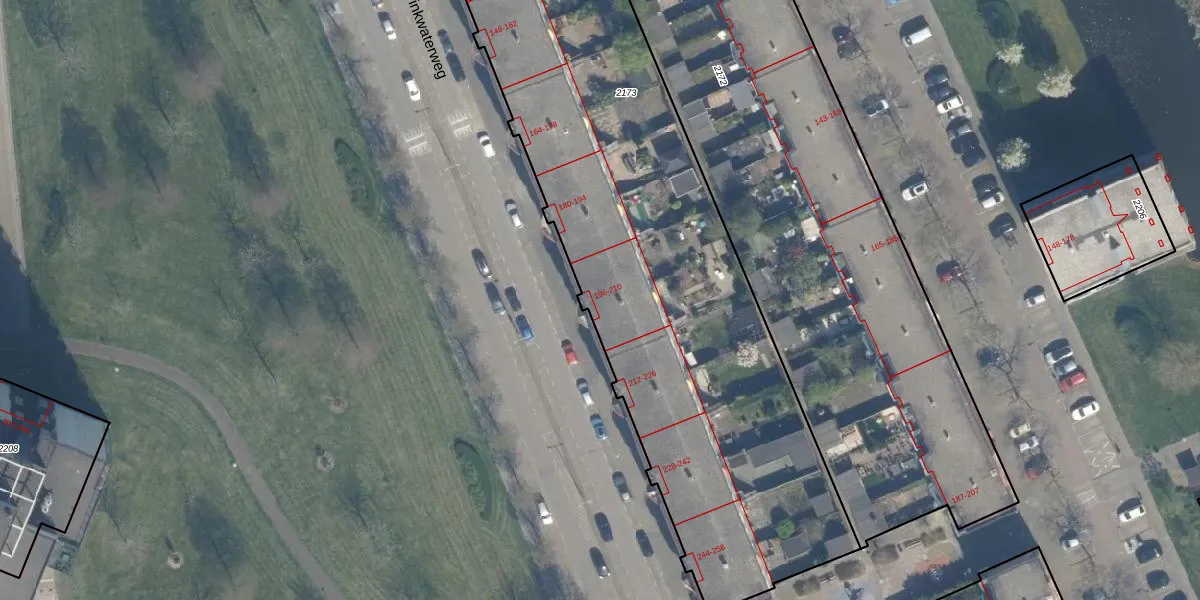 Drinkwaterweg 208 is gelegen op kadastraal perceel KLG00E2173. Deze kadastrale aanduiding is uniek en wordt gebruikt door het Kadaster om eigendomsrechten en andere zakelijke rechten vast te leggen. Het perceel maakt onderdeel uit van de kadastrale gemeente Kralingen.