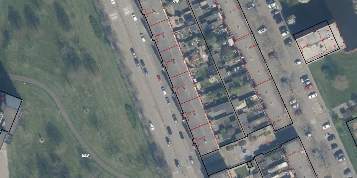 Drinkwaterweg 218 is gelegen op kadastraal perceel KLG00E2173. Deze kadastrale aanduiding is uniek en wordt gebruikt door het Kadaster om eigendomsrechten en andere zakelijke rechten vast te leggen. Het perceel maakt onderdeel uit van de kadastrale gemeente Kralingen.