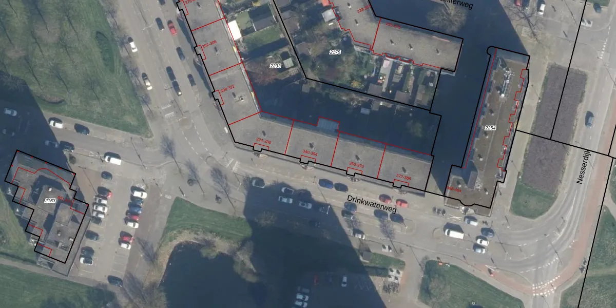 Drinkwaterweg 340 is gelegen op kadastraal perceel KLG00E2233. Deze kadastrale aanduiding is uniek en wordt gebruikt door het Kadaster om eigendomsrechten en andere zakelijke rechten vast te leggen. Het perceel maakt onderdeel uit van de kadastrale gemeente Kralingen.