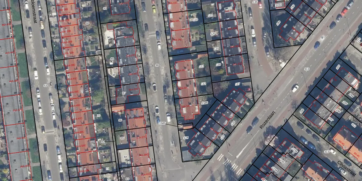 Het perceel waarop het adres ligt is HLG03-H-112. De afkorting 'HLG03' staat voor kadastrale gemeente Hillegersberg. Het perceel is 214 m² groot. Dat is kleiner dan de gemiddelde perceeloppervlakte in Hillegersberg, dat op 875,44 m² ligt. Het kleinste perceel in de kadastrale gemeente is 0 m² groot. De grootste perceeloppervlakte is 34,1 ha. Er zijn 3 adressen aanwezig op het perceel. In de Basisregistratie Kadaster (BRK) werden de grenzen van het perceel geregistreerd op 21-02-2003.