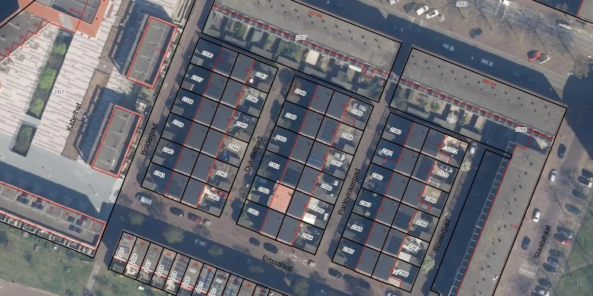 Het adres ligt op het perceel RTD05-P-2350, dat zich in de kadastrale gemeente Rotterdam bevindt. Het perceel is kleiner dan gemiddeld in Rotterdam. Het perceel is 128 m² groot, terwijl het gemiddelde ligt op 1402,06 m². Het kleinste perceel in de kadastrale gemeente is 0 m² groot. De grootste perceeloppervlakte is 36,8 ha. Dit is het enige adres dat aanwezig is op het perceel. De huidige grenzen van het perceel zijn digitaal in de Basisregistratie Kadaster (BRK) geregistreerd op 04-06-2009.