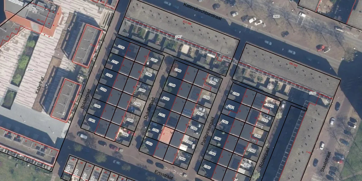 Het adres ligt op het perceel RTD05-P-2349, dat zich in de kadastrale gemeente Rotterdam bevindt. Het perceel is kleiner dan gemiddeld in Rotterdam. Het perceel is 128 m² groot, terwijl het gemiddelde ligt op 1402,06 m². Het kleinste perceel in de kadastrale gemeente is 0 m² groot. De grootste perceeloppervlakte is 36,8 ha. Dit is het enige adres dat aanwezig is op het perceel. In de Basisregistratie Kadaster (BRK) werden de grenzen van het perceel geregistreerd op 04-06-2009.