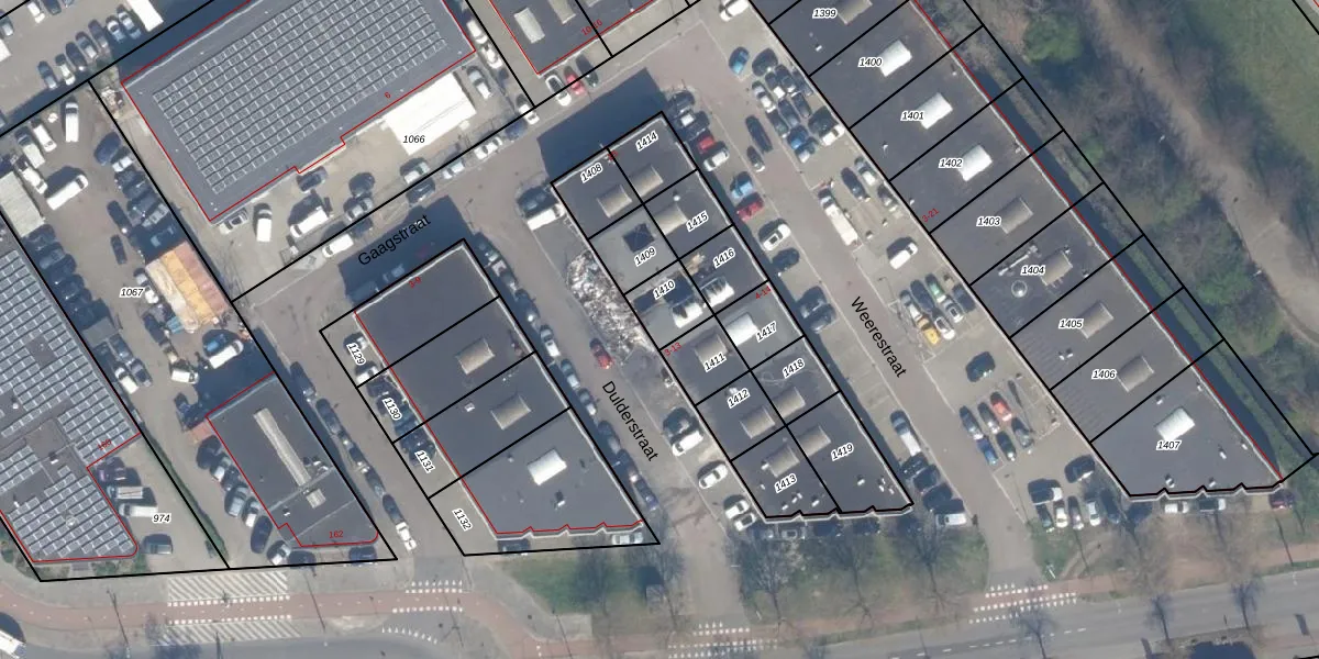 Gebruik de zoekbalk of klik op een perceel voor informatie over de adressen binnen dit perceel.
