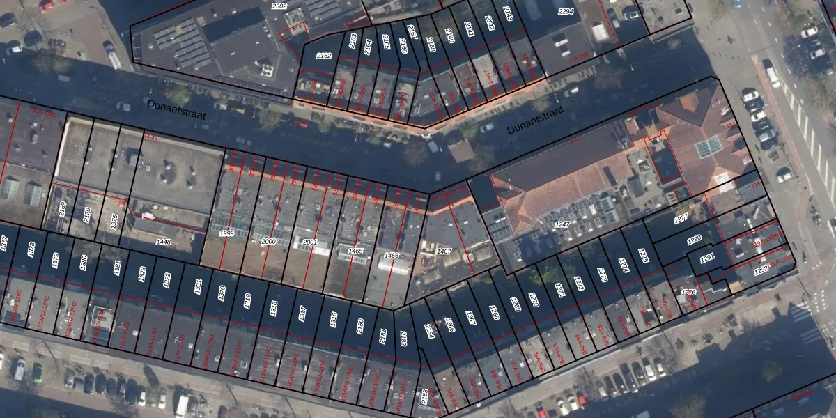 Dunantstraat 14-B is gelegen op kadastraal perceel DHV00F1466. Deze kadastrale aanduiding is uniek en wordt gebruikt door het Kadaster om eigendomsrechten en andere zakelijke rechten vast te leggen. Het perceel maakt onderdeel uit van de kadastrale gemeente Delfshaven.