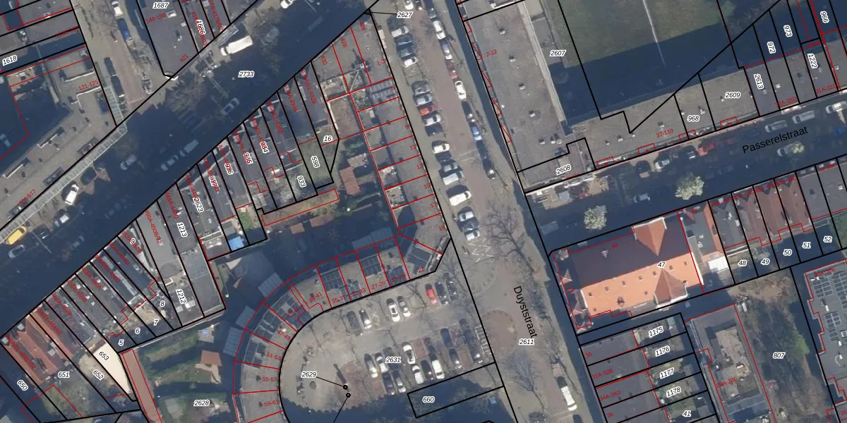Het perceel waarop Duyststraat 17 staat heeft een oppervlakte van 5163 m². Dit is een zeer groot perceel. De perceeloppervlakte wordt geregistreerd door het Kadaster. Gedetailleerde informatie over de maten van dit perceel kunt u vinden in het rapport Kadastrale kaart met maatvoering van Duyststraat 17.