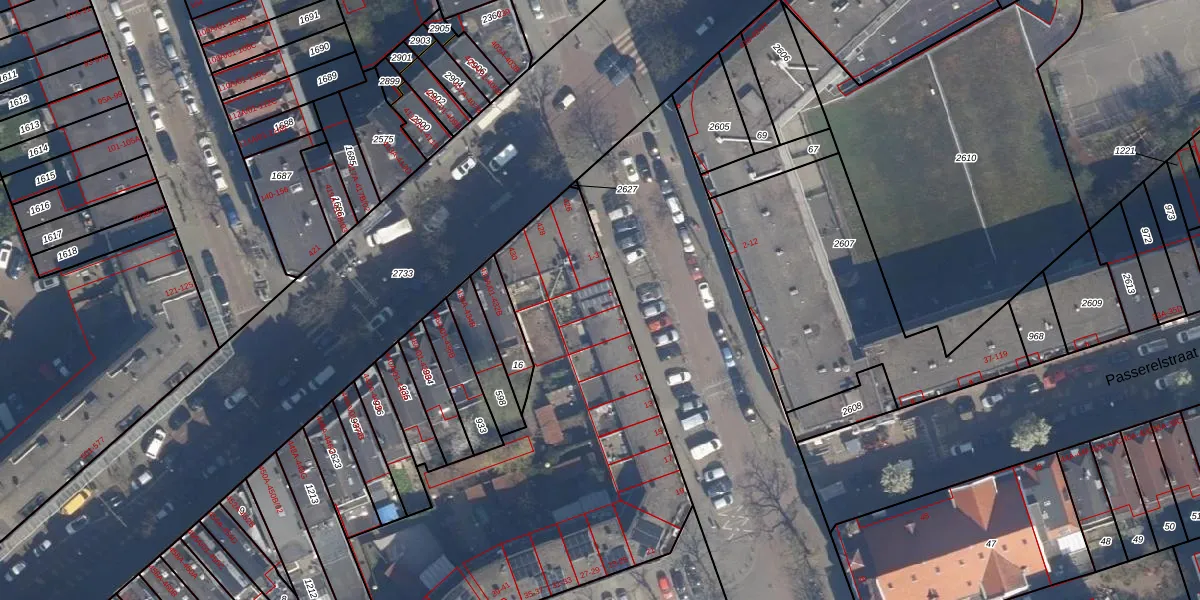 Het perceel waarop het adres ligt is DHV00-F-2628. De afkorting 'DHV00' staat voor kadastrale gemeente Delfshaven. De gemiddelde perceeloppervlakte in de kadastrale gemeente Delfshaven is 628,89 m². Dit perceel is met zijn 5163 m² dus groter dan gemiddeld. Het grootste perceel in de kadastrale gemeente is 22,2 ha. Het kleinste perceel heeft een oppervlakte van 0 m². Er zijn 62 adressen aanwezig op het perceel. De laatste wijziging in het de Basisregistratie Kadaster (BRK) was op 20-02-2004.