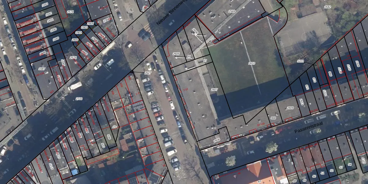 Het adres is gelegen op perceel 2607 in de sectie F en de kadastrale gemeente Delfshaven. De kadastrale aanduiding is aldus DHV00-F-2607. Het perceel is met 1047 m² relatief groot. Het gemiddelde ligt in de kadastrale gemeente Delfshaven op 628,82 m². Het grootste perceel in de kadastrale gemeente is 22,2 ha. Het kleinste perceel heeft een oppervlakte van 0 m². Op het perceel zijn 45 adressen aanwezig. In de Basisregistratie Kadaster (BRK) werden de grenzen van het perceel geregistreerd op 20-09-2004.