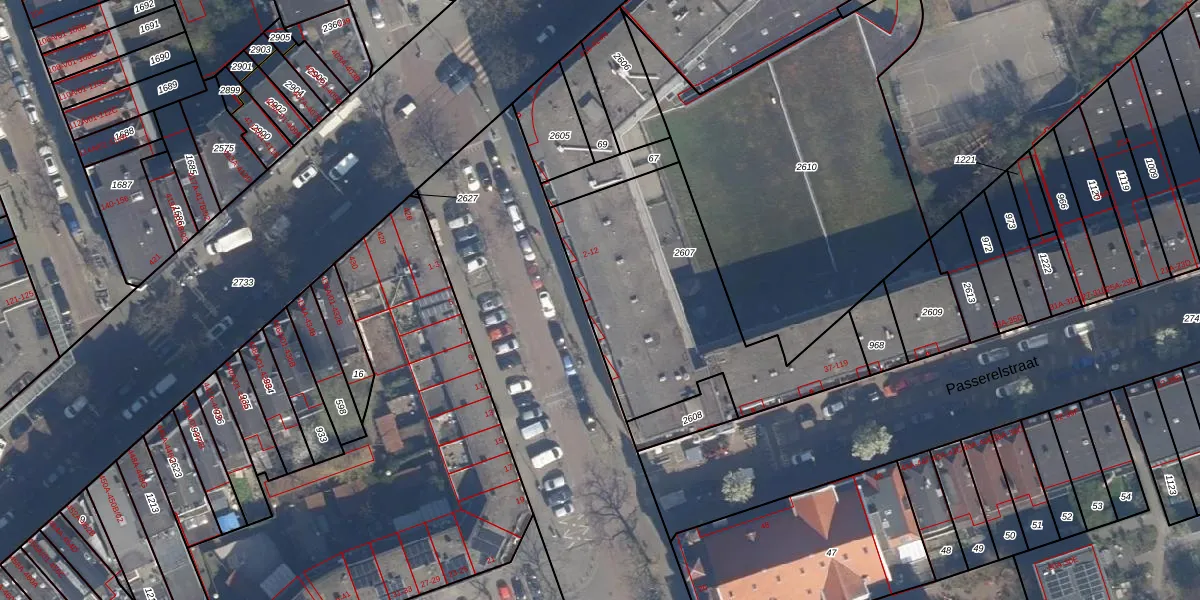 Het adres is gelegen op perceel 2607 in de sectie F en de kadastrale gemeente Delfshaven. De kadastrale aanduiding is aldus DHV00-F-2607. Het perceel is met 1047 m² relatief groot. Het gemiddelde ligt in de kadastrale gemeente Delfshaven op 628,89 m². Het grootste perceel in de kadastrale gemeente is 22,2 ha. Het kleinste perceel heeft een oppervlakte van 0 m². Op het perceel zijn 45 adressen aanwezig. De huidige grenzen van het perceel zijn digitaal in de Basisregistratie Kadaster (BRK) geregistreerd op 20-09-2004.