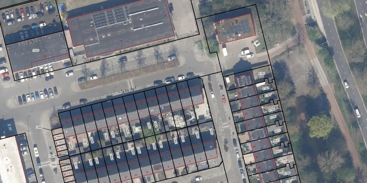 Gebruik de zoekbalk of klik op een perceel voor informatie over de adressen binnen dit perceel.